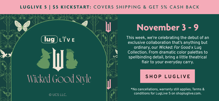 Stream new product launches, shop limited-time offers, and chat with fellow Lug fans — all in real time. Hosted live with giveaways, sneak peeks, and tons of fun.
