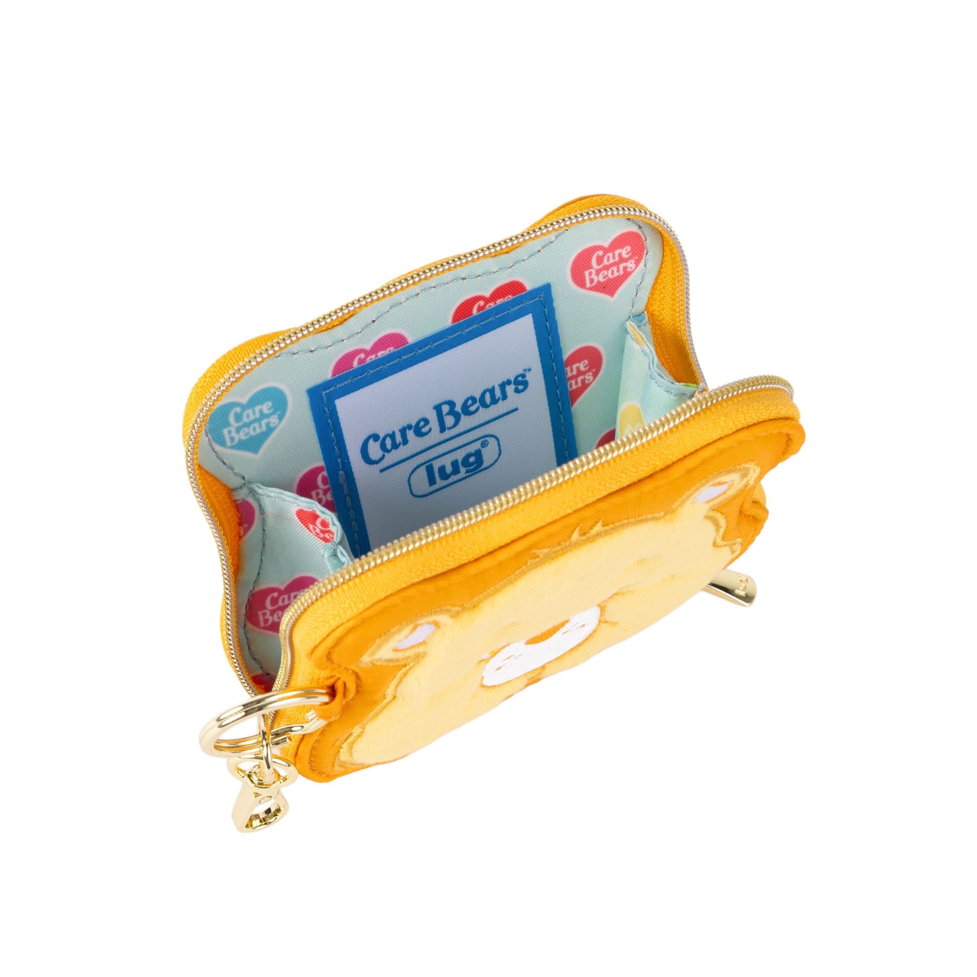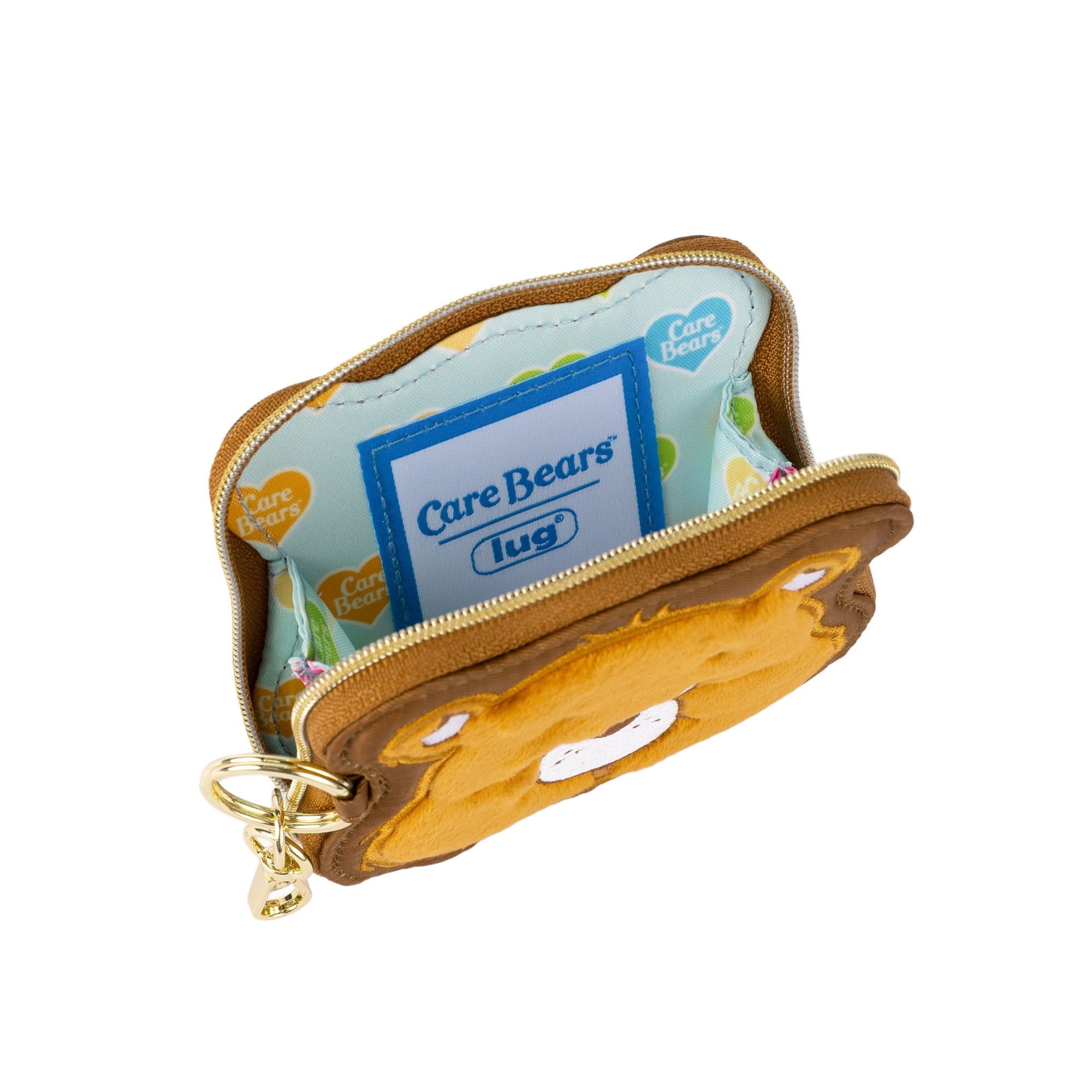 Keep your small essentials cozy and cute with the Care Bears x Lug Coin Pouch. Featuring a soft fleece Care Bear face, heart quilting, and rainbow-printed lining, this zip-around pouch brings charm and function wherever it clips on — the perfect pop of nostalgia for your keys, bag, or lanyard.