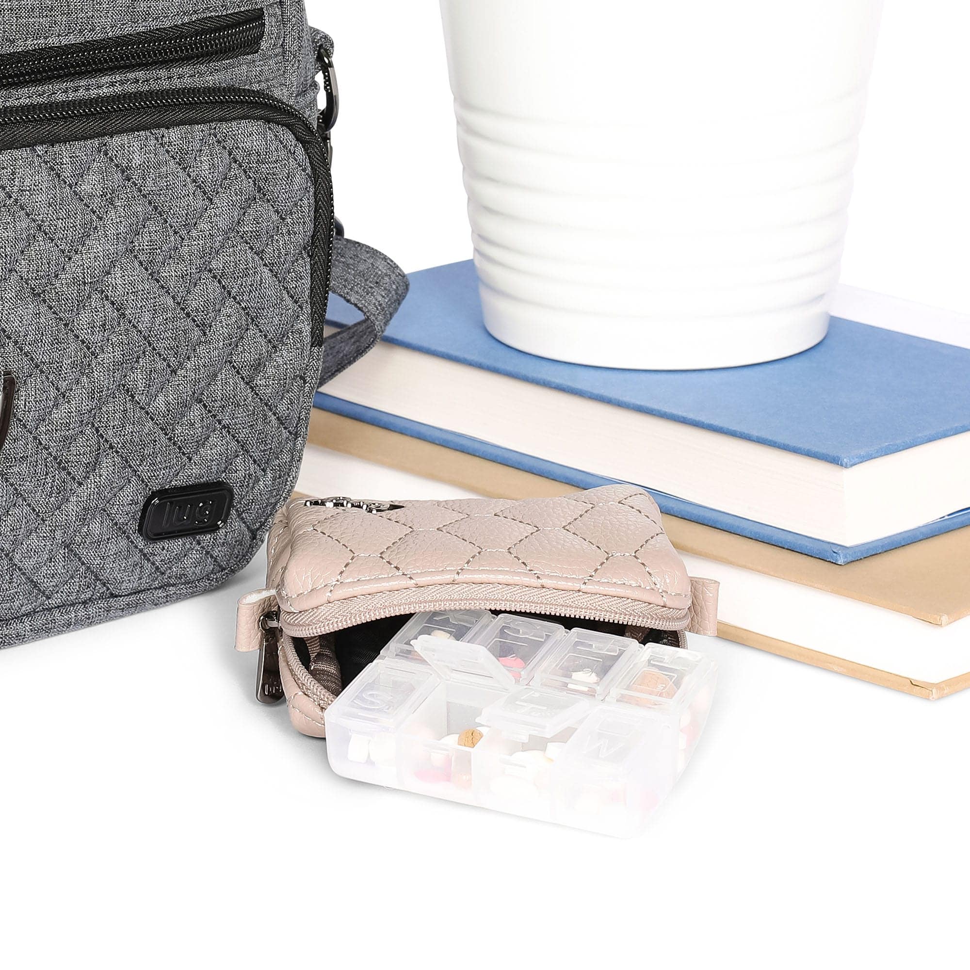 Don't want your pill case to look like a pill case? Then the Choo Choo Mini VL is perfect for you. We packed this fashion-forward bag with an 8-day pill organizer, which you can take out or leave in — totally your call. And the zipper gives you a wide opening, so you can actually see and reach inside.