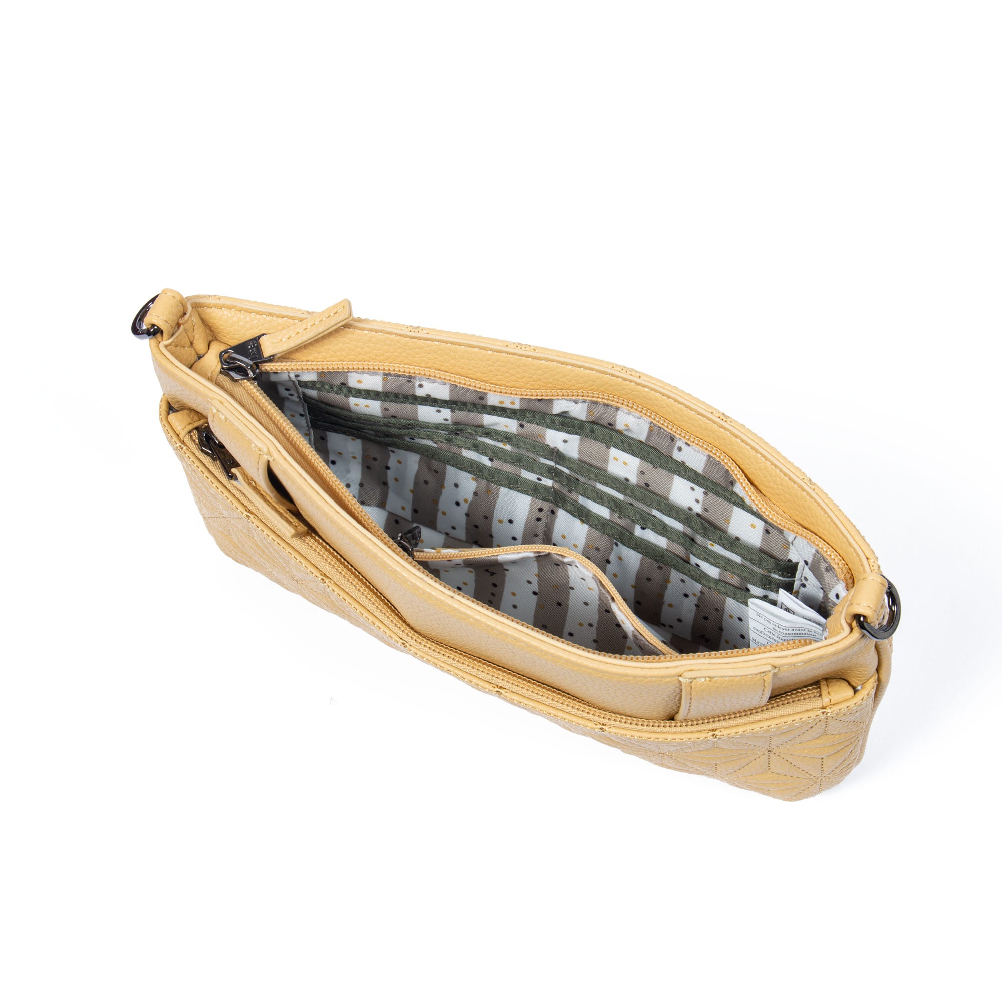 - Adjustable and removable crossbody strap