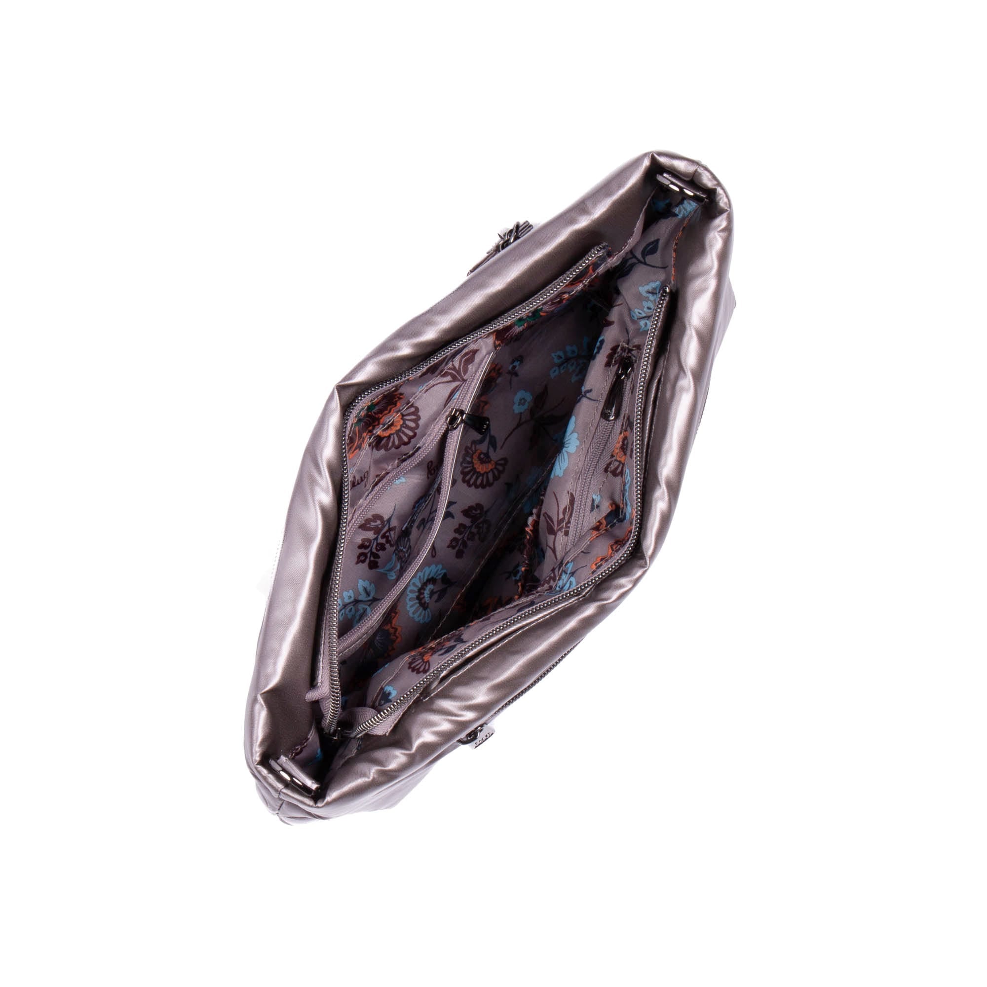 - One soft lined cell phone slip pocket with magnetic closure
